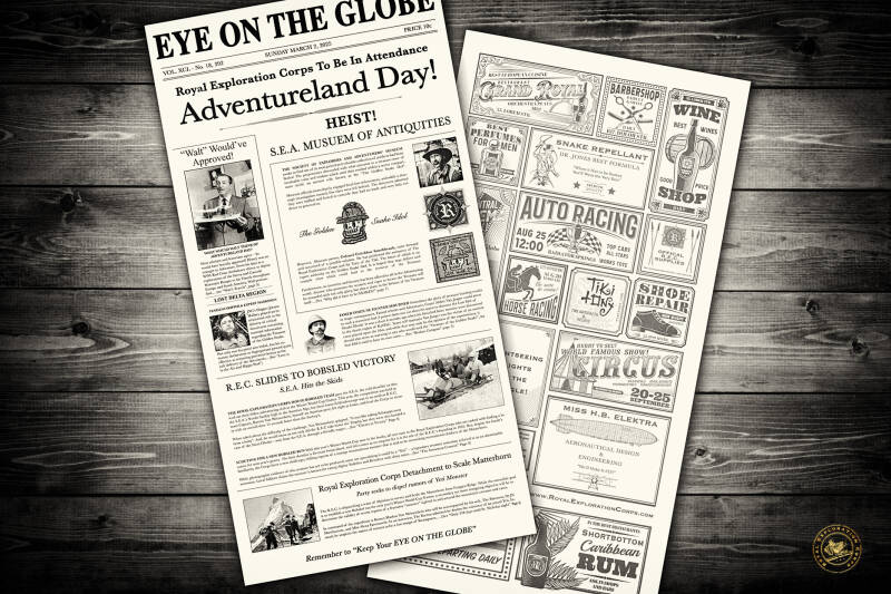 Corps Members arrive and mingle with other likeminded explorers! The Eye On The Globe covered much of the days activities with both a news paper and news reel. The Corp was honored to assist the days hosts, as well as fellow adventurers as they searched for the Golden Snake Idol!