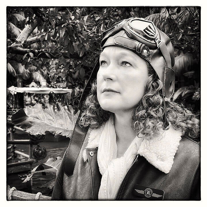 Years ago, Veronica joined the Aero Squadron of the R.E.C. She quickly gained notoriety for her speedy transport and skillful aviation abilities, slipping away from her duties at the TL Tiki to join other R.E.C. members in adventures around the globe. To this day, many stories are shared and future plans made at her prized command post. The TL Tiki is home to one of the R.E.C.'s radiotelegraphy stations. Miss Constantine being owner and skipper there, is privy to many secrets and exploratory missions. Constantine is valued as a trustworthy confidant. She also dabbles in chemistry, creating tasty yet potent concoctions for her compadres and even crafting her own fuel for her aeronautical journeys.